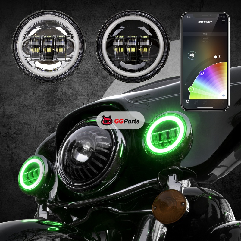 XK Glow 4.5In Black RGB LED Harley Running Light XKchrome Bluetooth App Controlled Kit