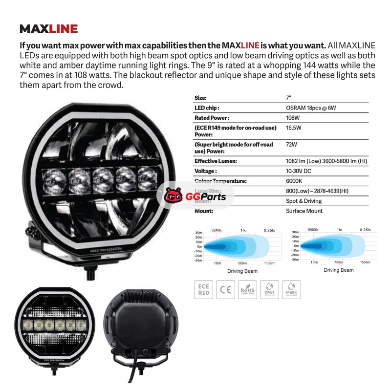 Go Rhino Xplor Blackout Series Maxline LED Hi/Low Beam w/Multi DRL (Surface Mount) 7in. - Blk