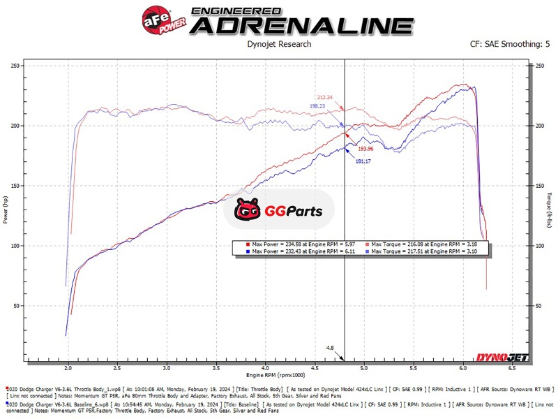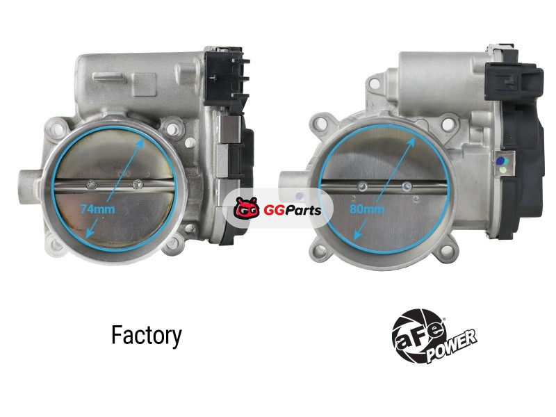 Увеличенная дроссельная заслонка aFe POWER 80 мм и комплект адаптера улучшают поток воздуха двигателя по сравнению со стандартной заслонкой 74 мм. Дополнительный поток воздуха увеличит мощность и отклик дроссельной заслонки.