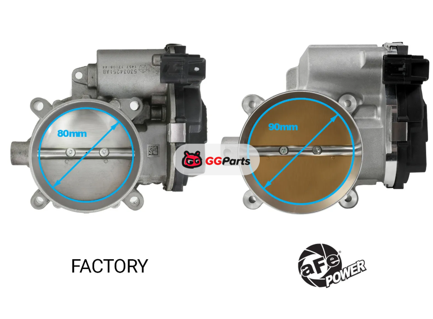 Увеличенная дроссельная заслонка aFe POWER 90 мм и комплект адаптера улучшают поток воздуха двигателя по сравнению со стандартной заслонкой 80 мм. Дополнительный поток воздуха увеличит мощность и отклик дроссельной заслонки.
