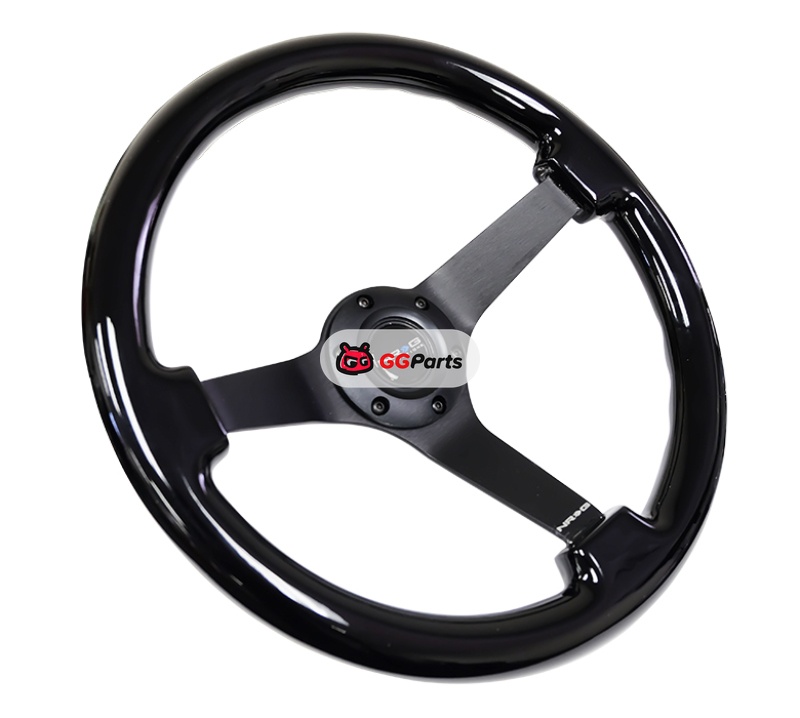 NRG Reinforced Steering Wheel (350mm / 3in. Deep) Black w/Black Chrome Solid 3-Spoke Center