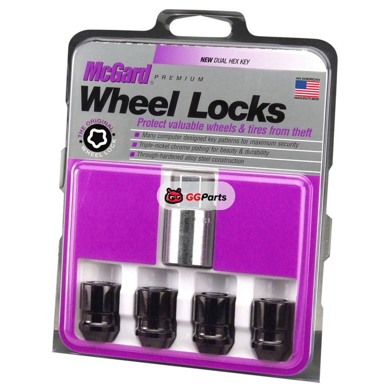 McGard Wheel Lock Nut Set - 4pk. (Cone Seat) 1/2-20 / 3/4 & 13/16 Dual Hex / 1.28in. Length - Black