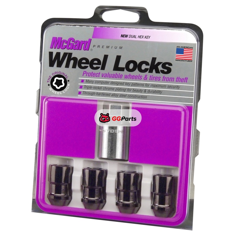 McGard Wheel Lock Nut Set - 4pk. (Cone Seat) 1/2-20 / 3/4 & 13/16 Dual Hex / 1.46in. Length - Black