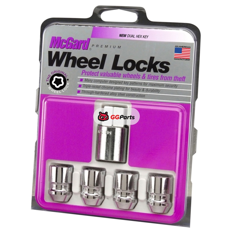 McGard Wheel Lock Nut Set - 4pk. (Cone Seat) 1/2-20 / 3/4 & 13/16 Dual Hex / 1.28in. Length - Chrome