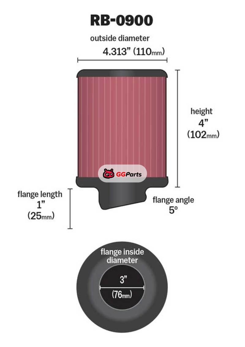 K&N Universal Rubber Filter 3 inch 5 Degree FLG 4 1/2 inch OD 4 inch Height