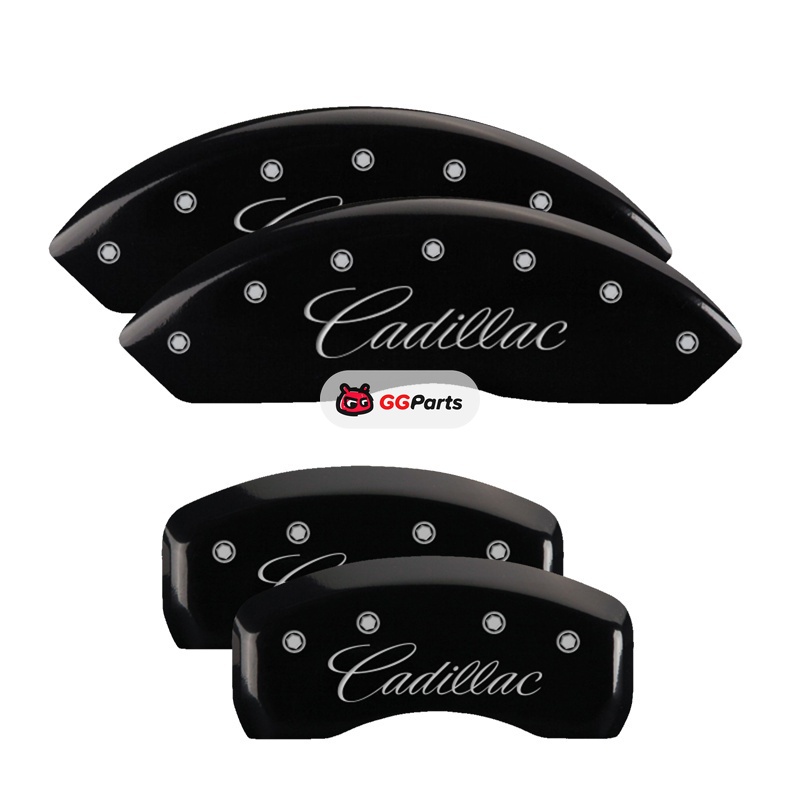 MGP 4 Caliper Covers Engraved Front & Rear Cursive/Cadillac Black finish silver ch