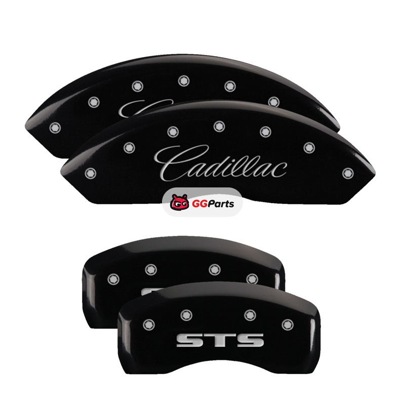 MGP 4 Caliper Covers Engraved Front Cursive/Cadillac Engraved Rear STS Black finish silver ch