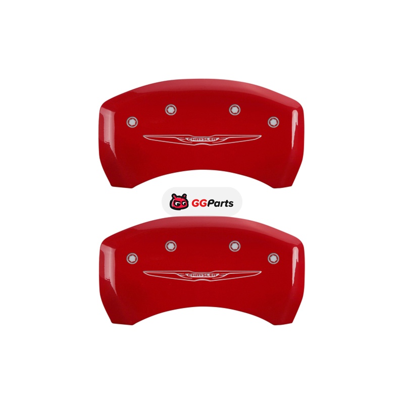 MGP 4 Caliper Covers Engraved Front & Rear Style 2/Chrysler Wing Red finish silver ch
