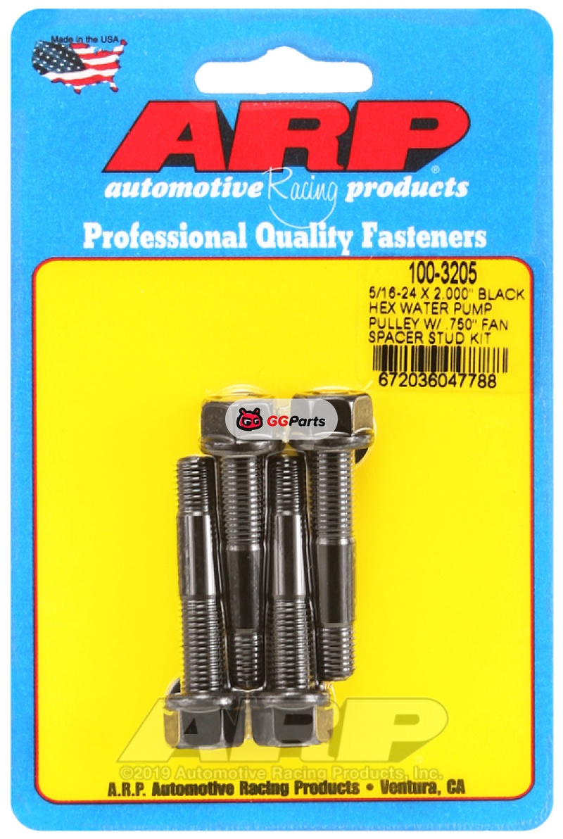 ARP 5/16-24 X 2.000 Black Hex Water Pump Pulley w/ .750in Fan Spacer Stud Kit