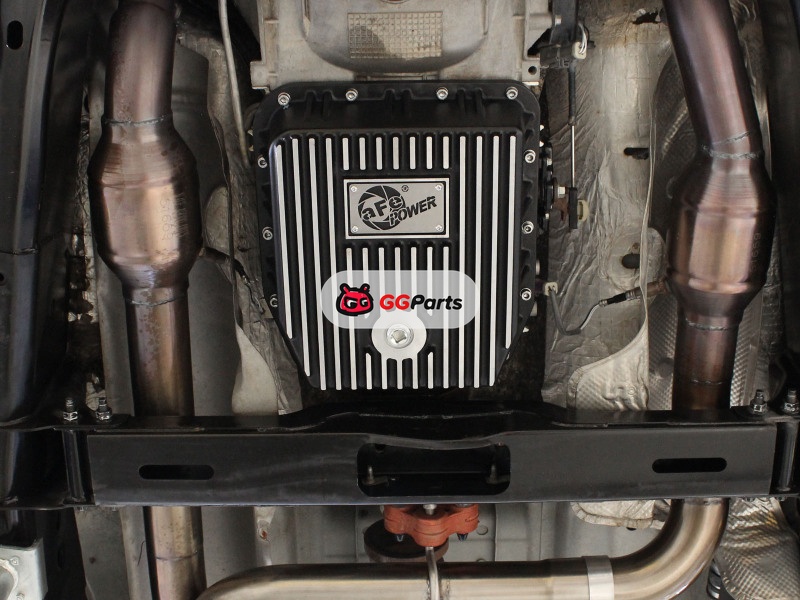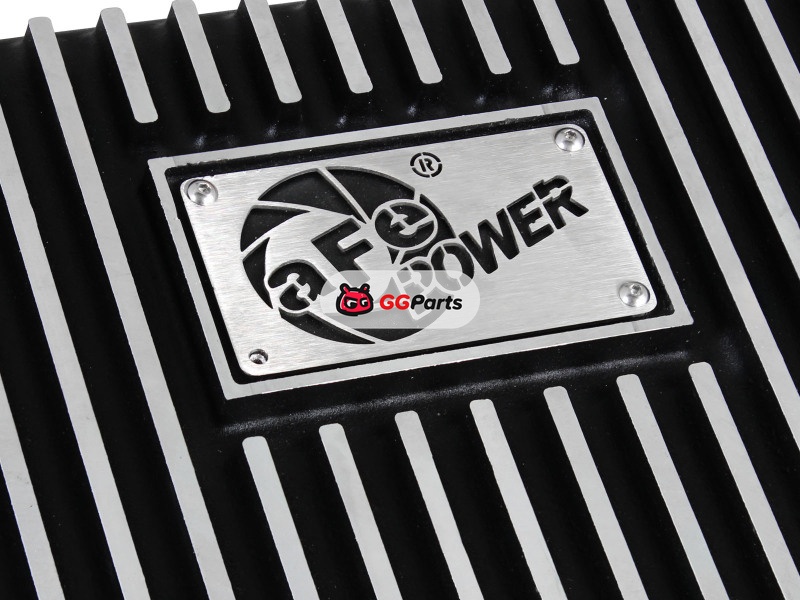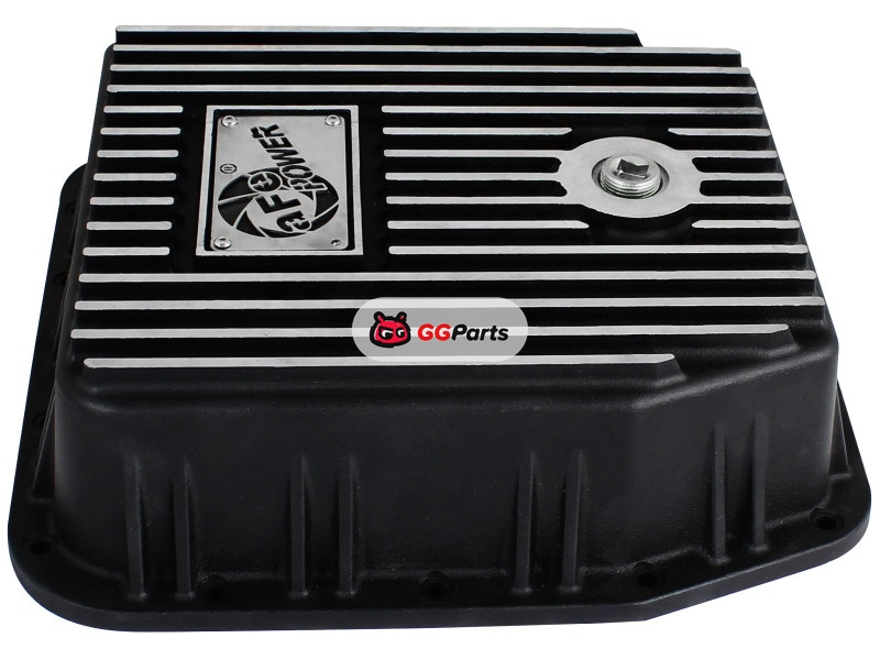 aFe POWER Transmission Pan Ford Trucks 80-92 (AOD Transmission)- Black w/ Machined Fins