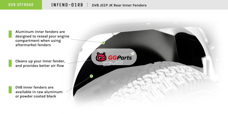 DV8 Offroad 07-18 Jeep Wrangler JK Rear Aluminum Inner Fender - Black