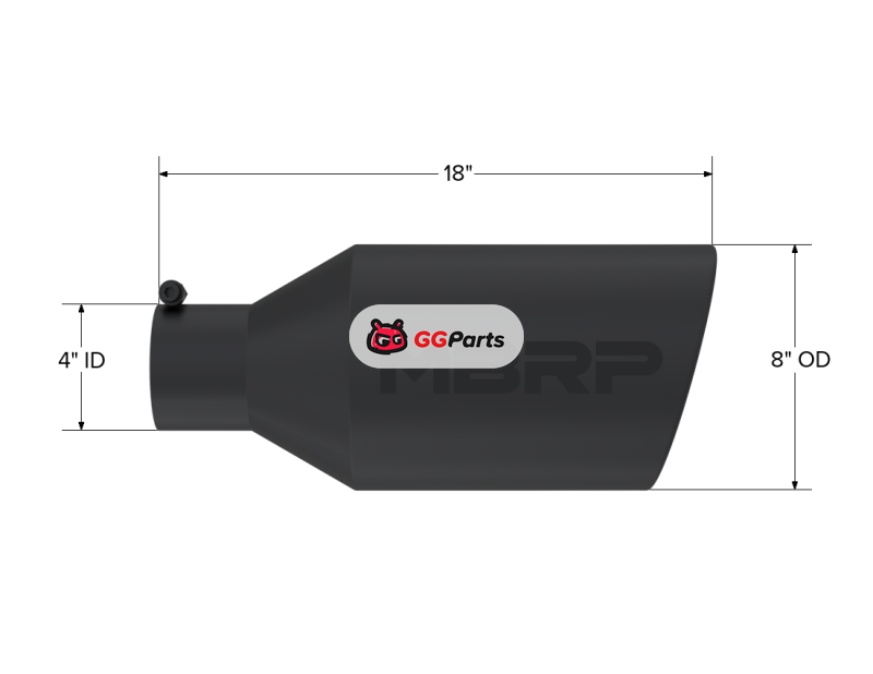MBRP Universal Tip 8in O.D. Rolled End 4in inlet 18in length Black