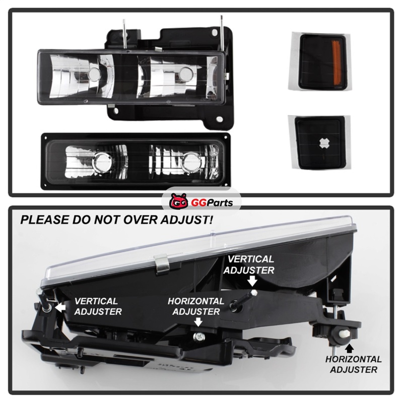 Xtune Chevy Suburban 94-98 Headlights w/ Corner & Parking Lights 8pcs Black HD-JH-CCK88-AM-BK-SET