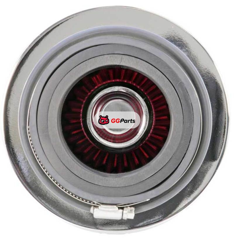 K&N Universal Air Filter Chrome Round Tapered Red - 4in Flange ID x 1.125in Flange Length x 5.5in H
