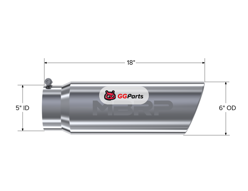 MBRP Universal Tip 6in OD Angled Rolled End 5in Inlet 18in Lgth T304 Exhaust