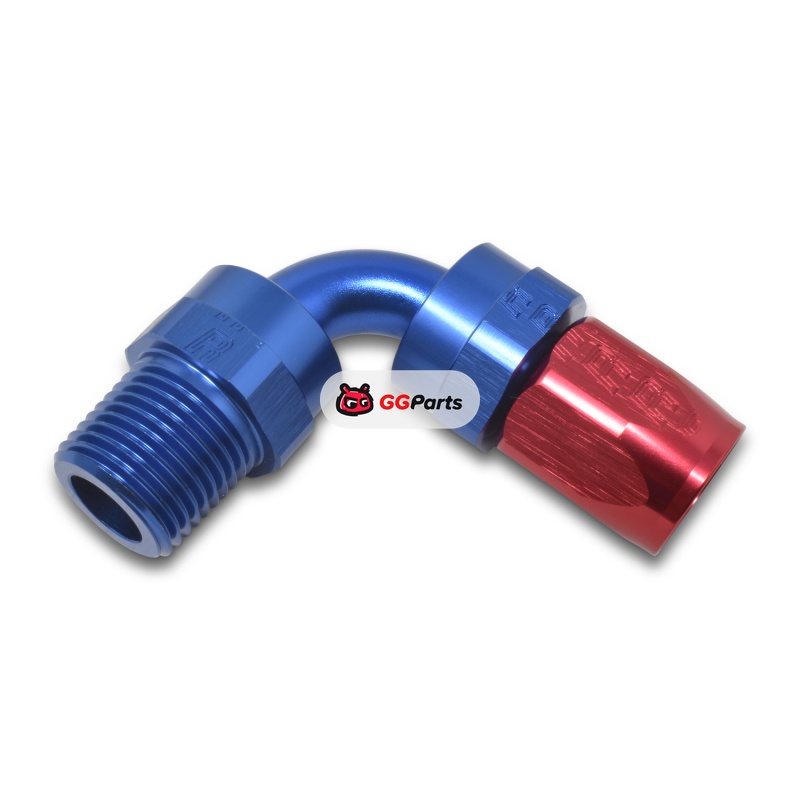 Russell Performance -8 AN Red/Blue 90 Degree Full Flow Swivel Pipe Thread Hose End (With 3/8in NPT)