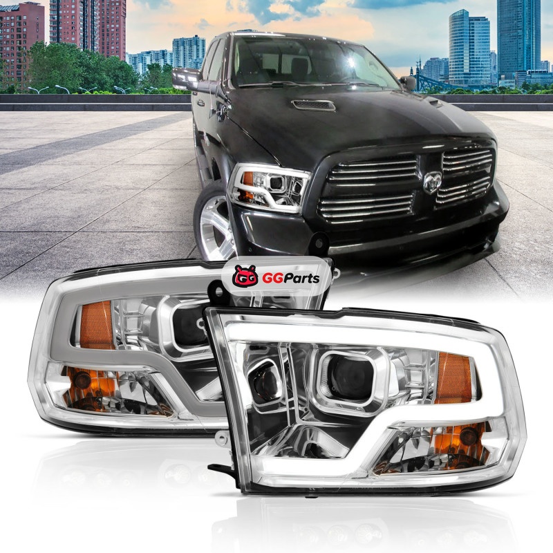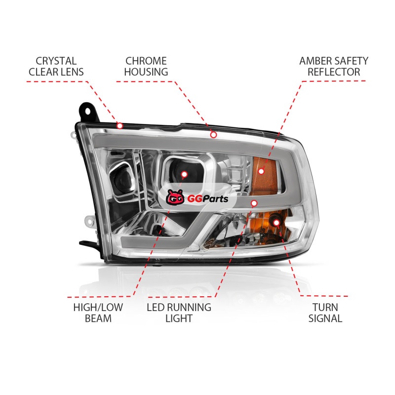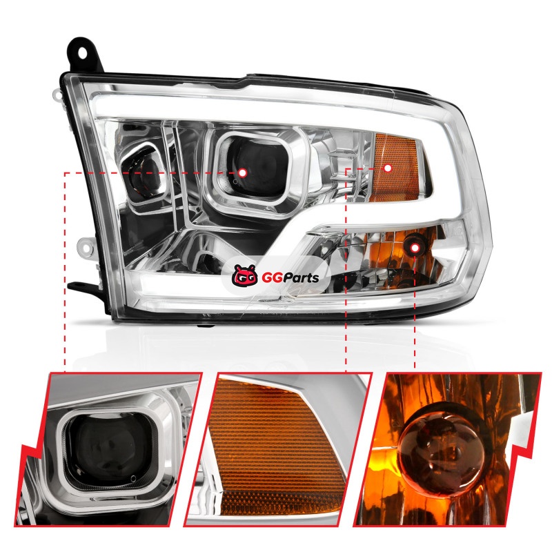 ANZO 09-18 Dodge Ram 1500 Plank Style Projector Headlights Chrome w/ Halo