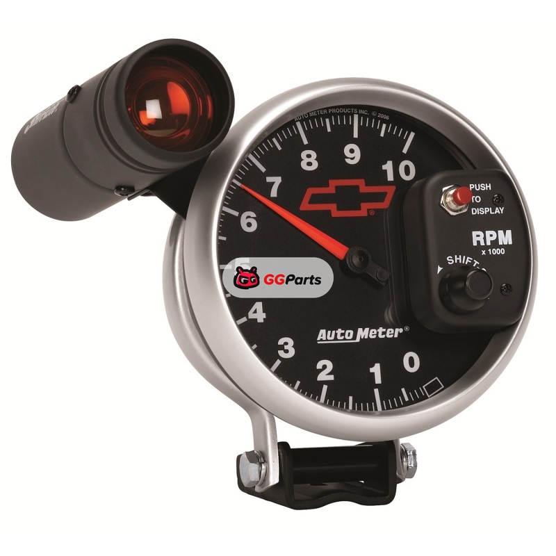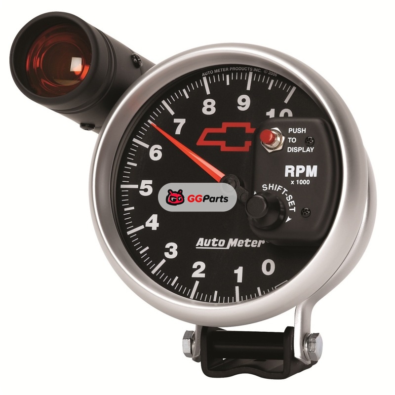 Autometer GM Bowtie Black 5in 10000 RPM Pedestal Electronic Tachometer w/ Ext Shift Light