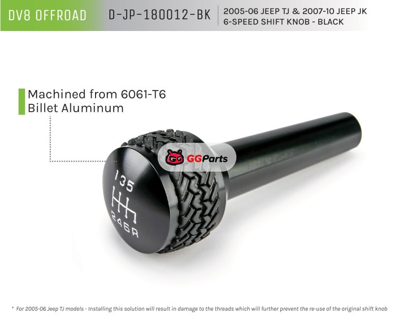 DV8 Offroad 2005-2010 Jeep TJ/JK 6-Speed Shift Knob Black Finish