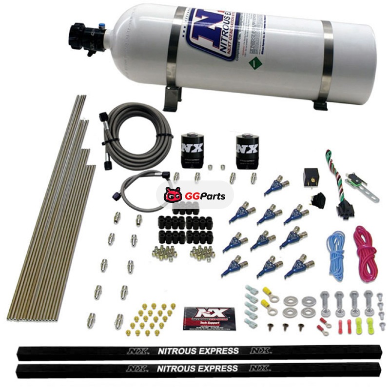 Nitrous Express 10 Cyl Piranha Nozzle Direct Port Nitrous Kit (250-500HP) w/15lb Bottle