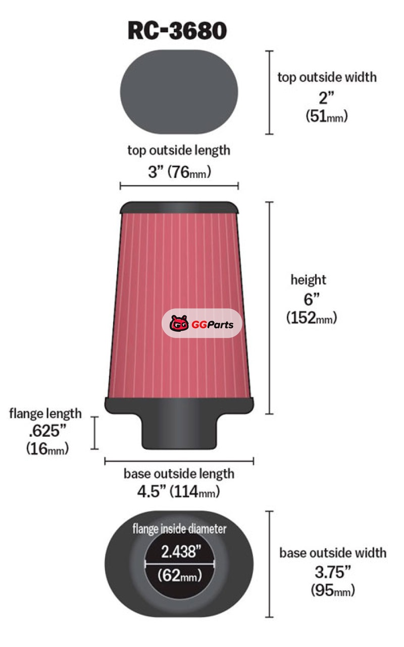 Внешний размер фильтра верхний (Top): 76x51 мм
