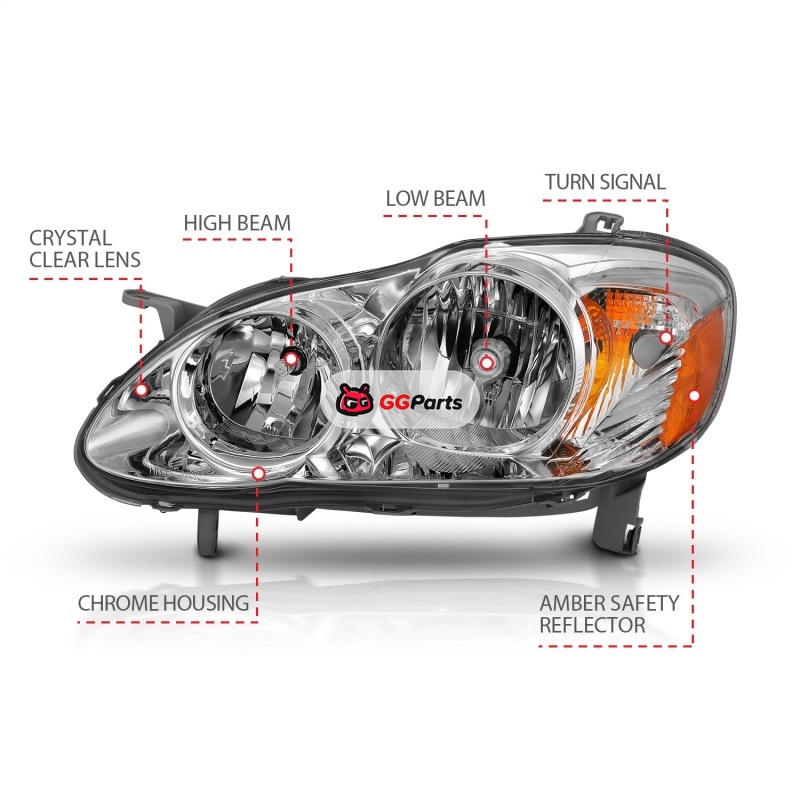 ANZO 2005-2008 Toyota Corolla Crystal Headlight Chrome Amber