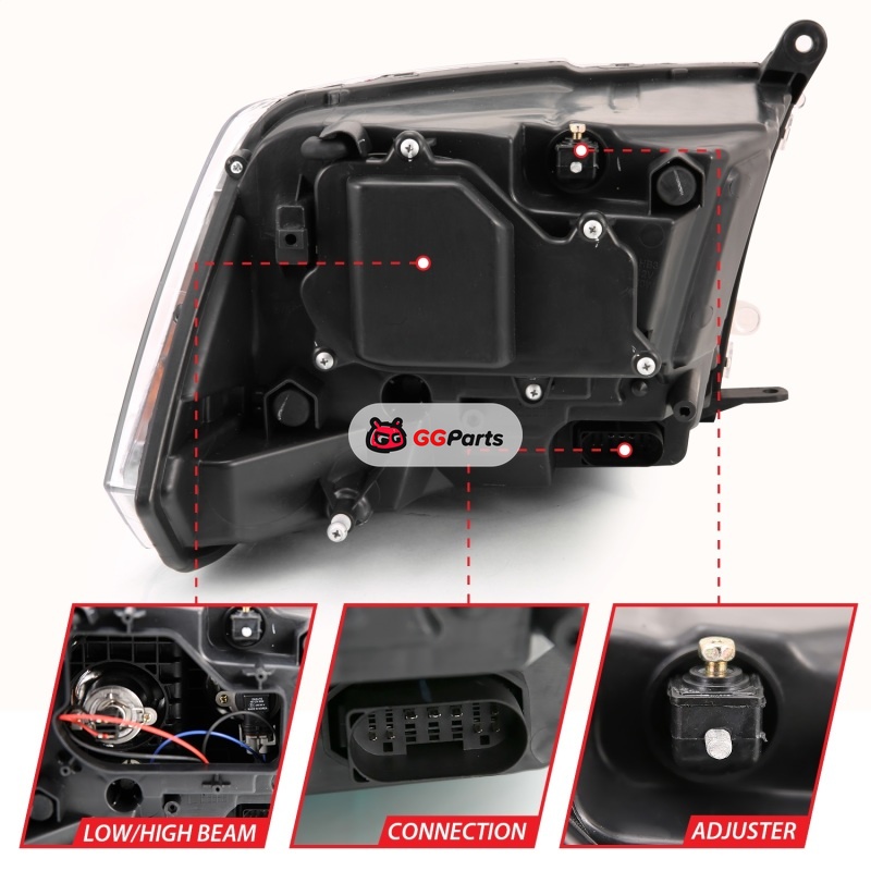 ANZO 2009-2018 Dodge Ram 1500 Projector Plank Style Switchback H.L Halo Black Amber (OE Style)