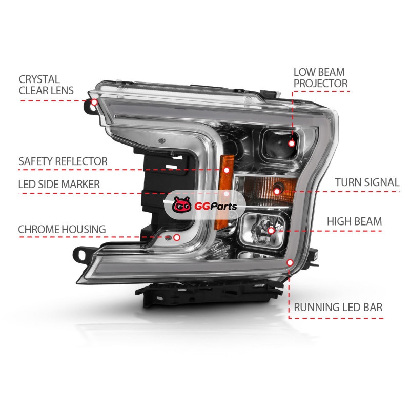 ANZO 2018-2019 Ford F-150 Projector Plank Style H.L. Chrome Amber (Without Switchback)