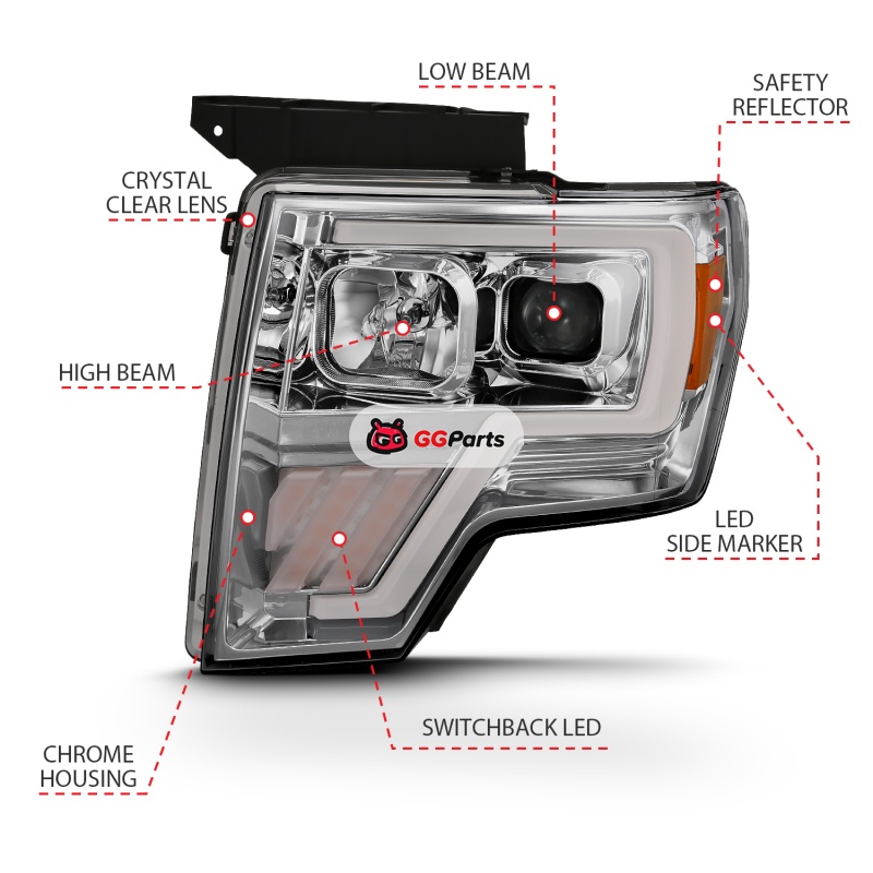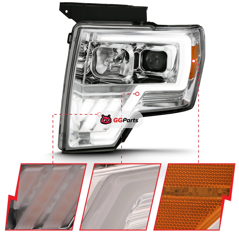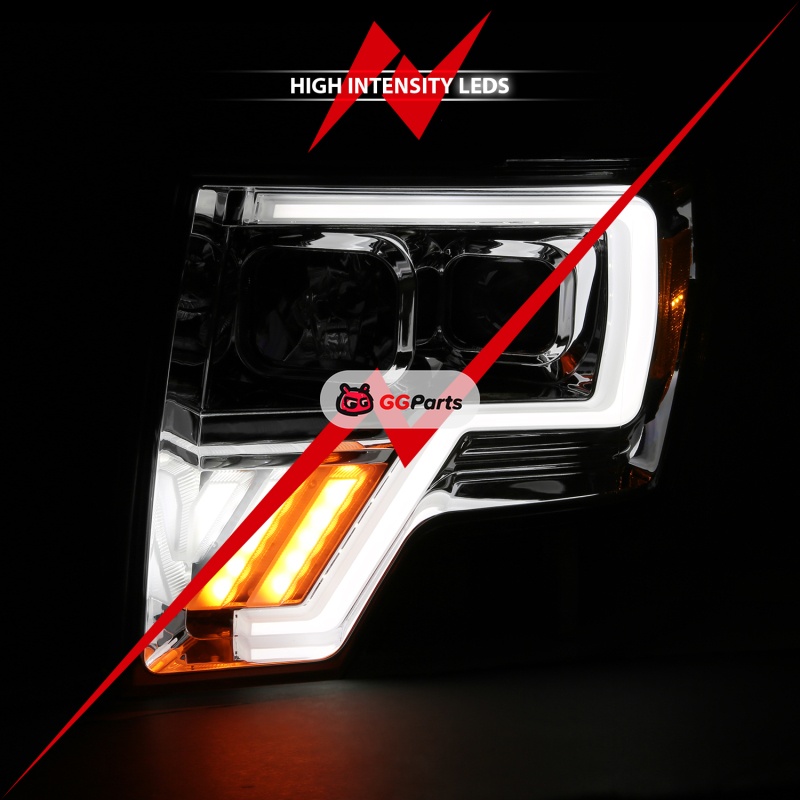 ANZO 2009-2013 Ford F-150 Projector Light Bar G4 Switchback H.L. Chrome Amber