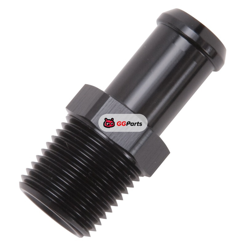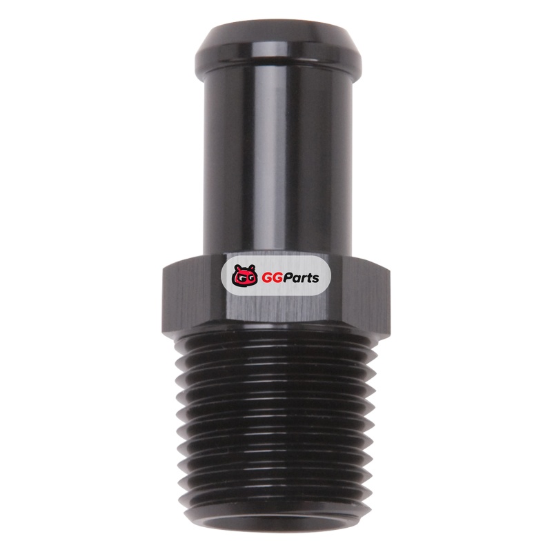 Edelbrock Hose End Straight 1/2In NPT to 5/8In Barb Black Anodize
