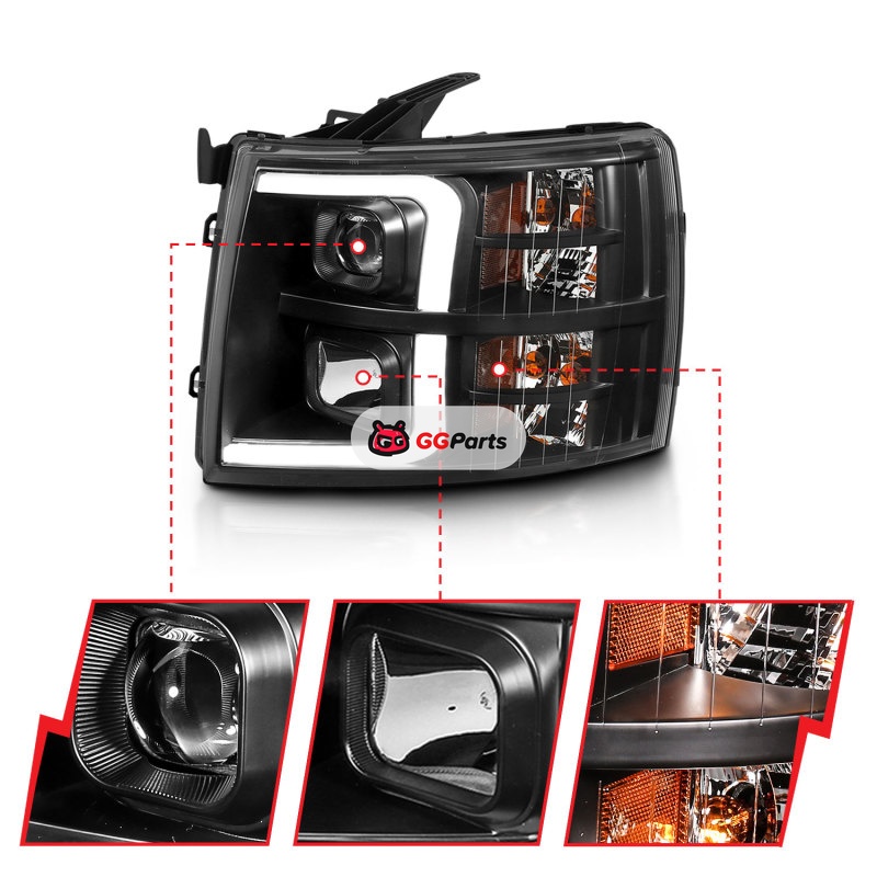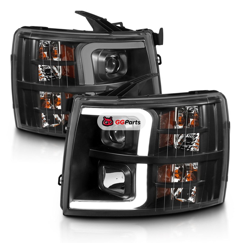 ANZO 07-13 Chevrolet Silverado 3500 Projector Headlights - Black Amber