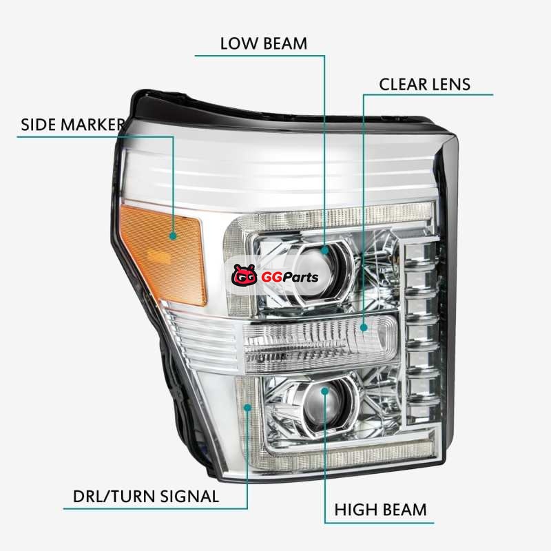 AlphaRex 11-16 Ford F-250 SD PRO-Series Projector Headlights Plank Style Design Chrome w/Seq Signal