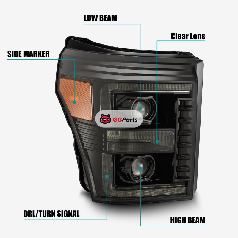 AlphaRex 11-16 Ford F-350 SD LUXX LED Proj Headlights Plank Style Alpha Blk w/Activ Light/Seq Signal