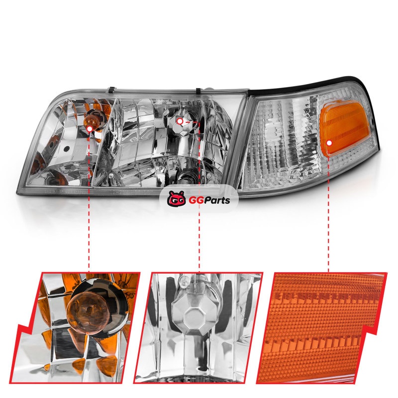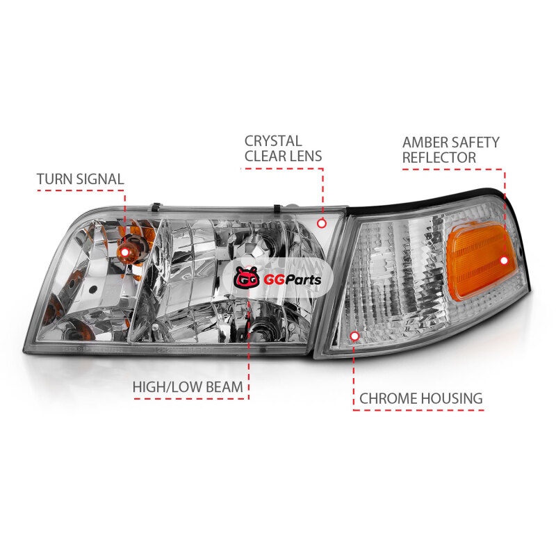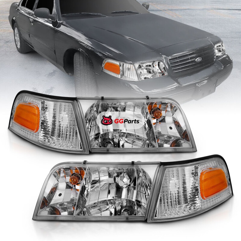 ANZO 1998-2005 Ford Crown Victoria Crystal Headlight Chrome With Bumper Light (OE)