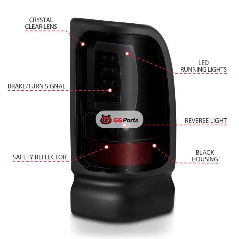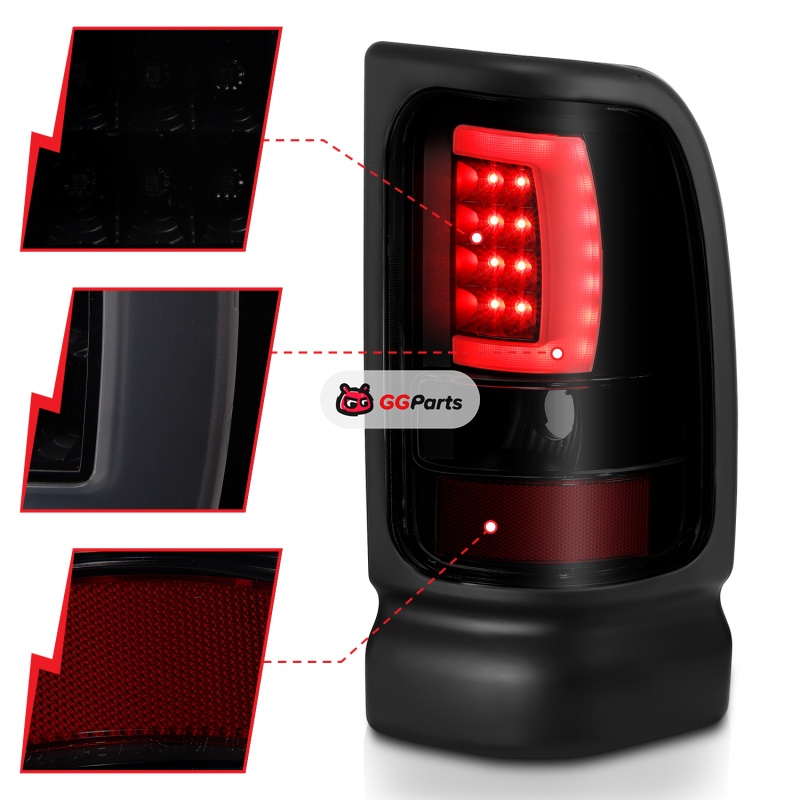 ANZO 1994-2001 Dodge Ram 1500 LED Taillights Plank Style Black w/Smoke Lens