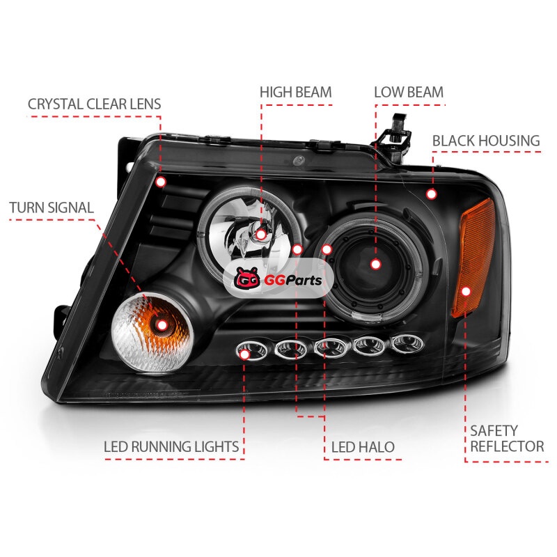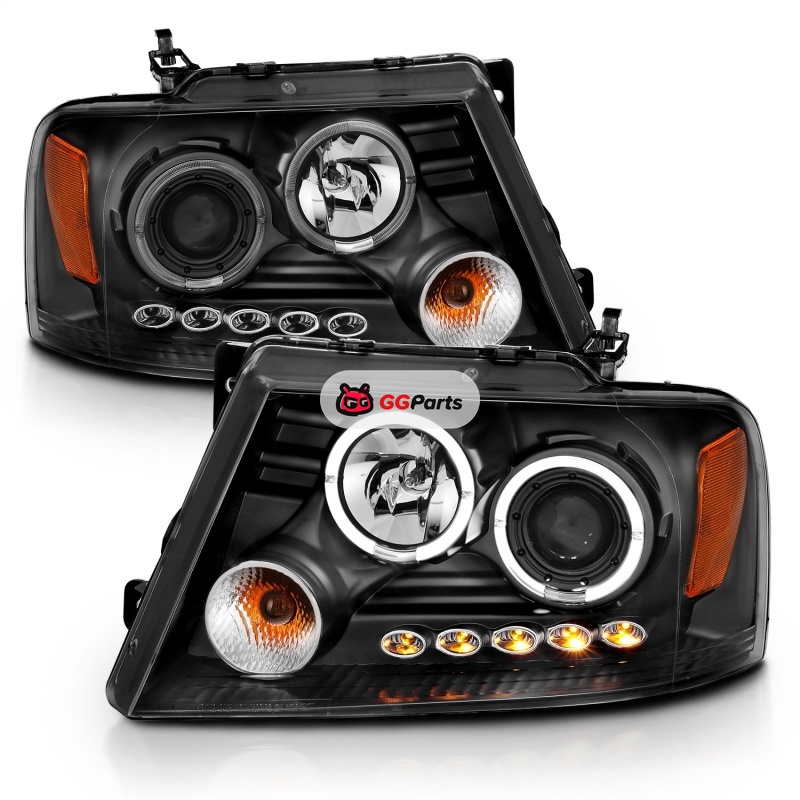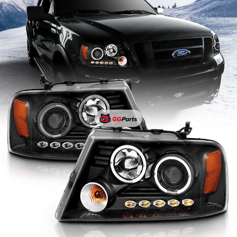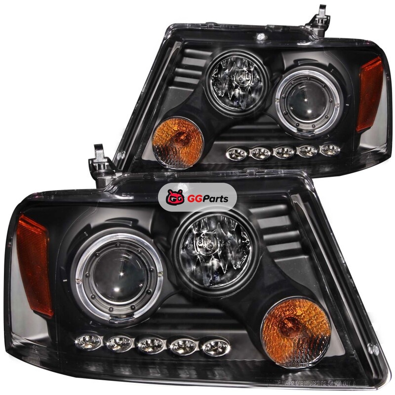 ANZO 2004-2008 Ford F-150 Projector Headlights w/ Halo and LED Black G2
