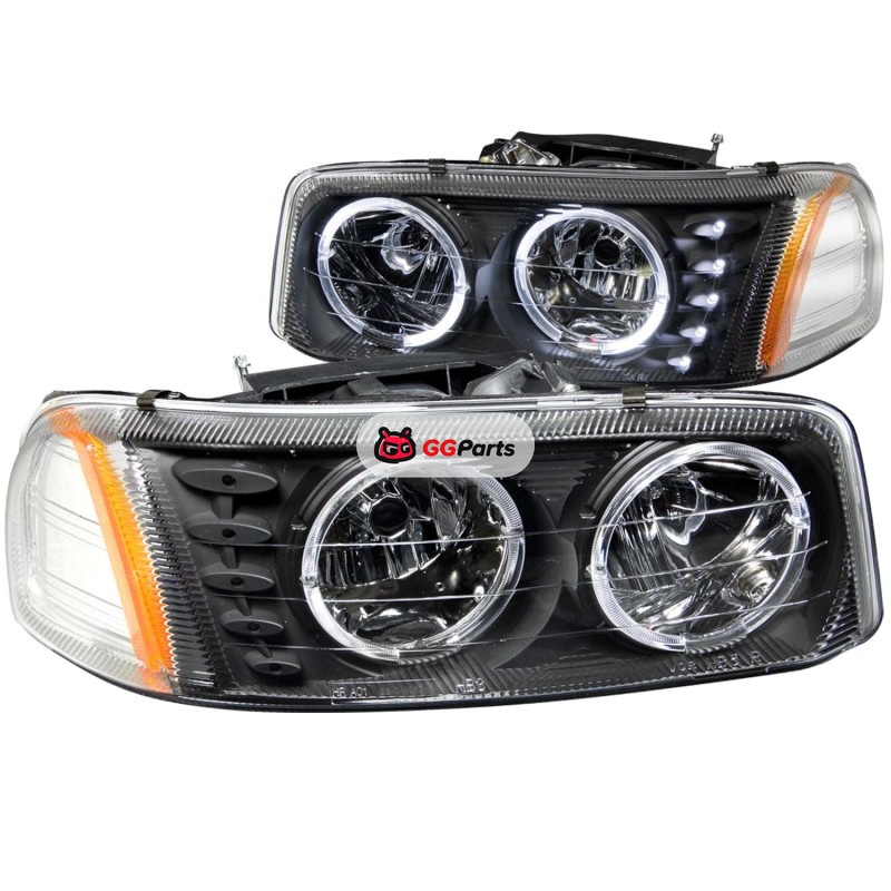 ANZO 1999-2006 Gmc Sierra 1500 Crystal Headlights w/ Halo and LED Black