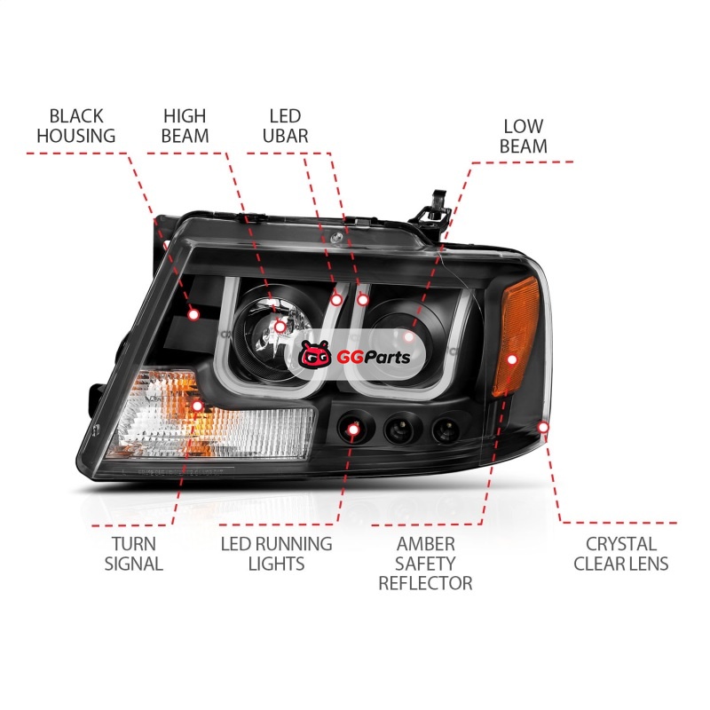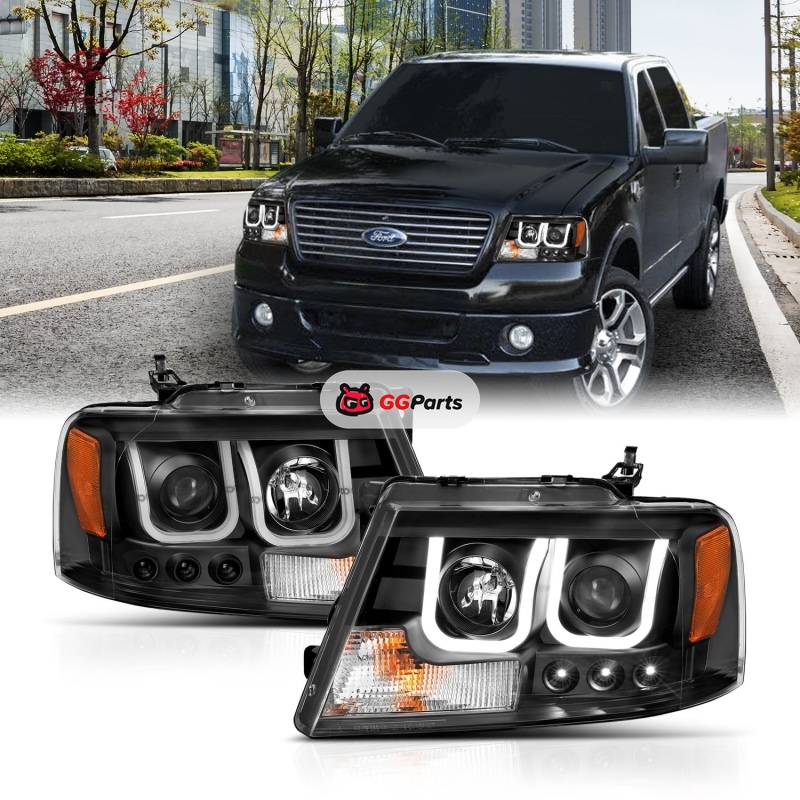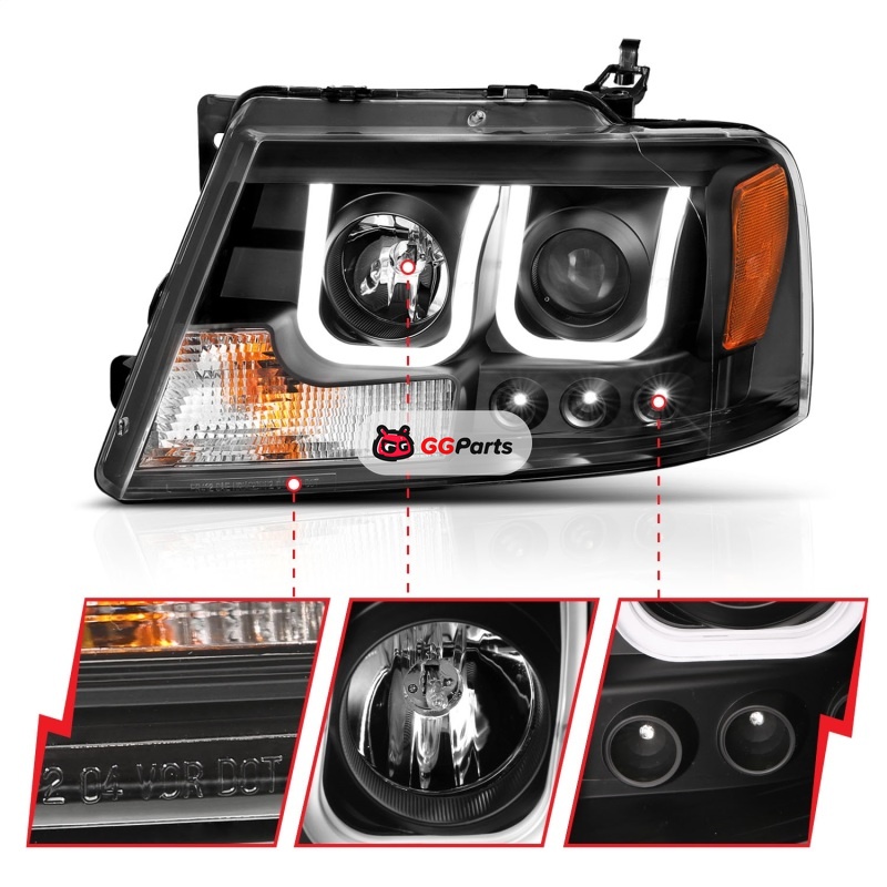ANZO 2004-2008 Ford F-150 Projector Headlights w/ U-Bar Black