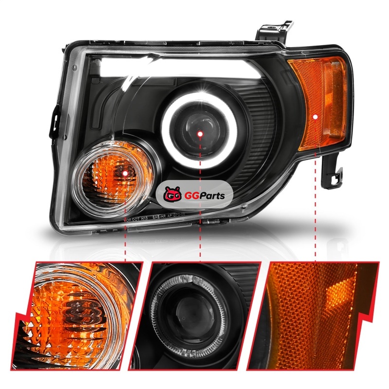 ANZO 2008-2012 Ford Escape Projector Headlights w/ Halo Black