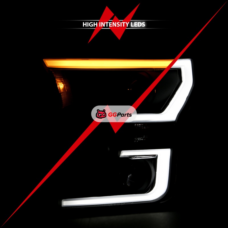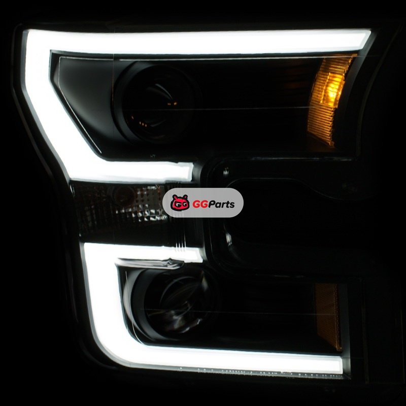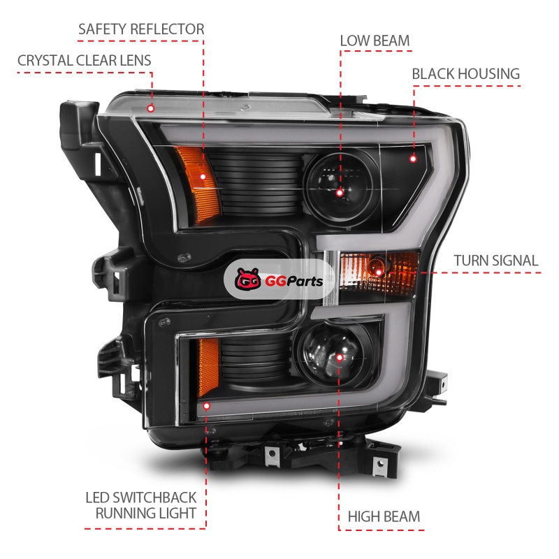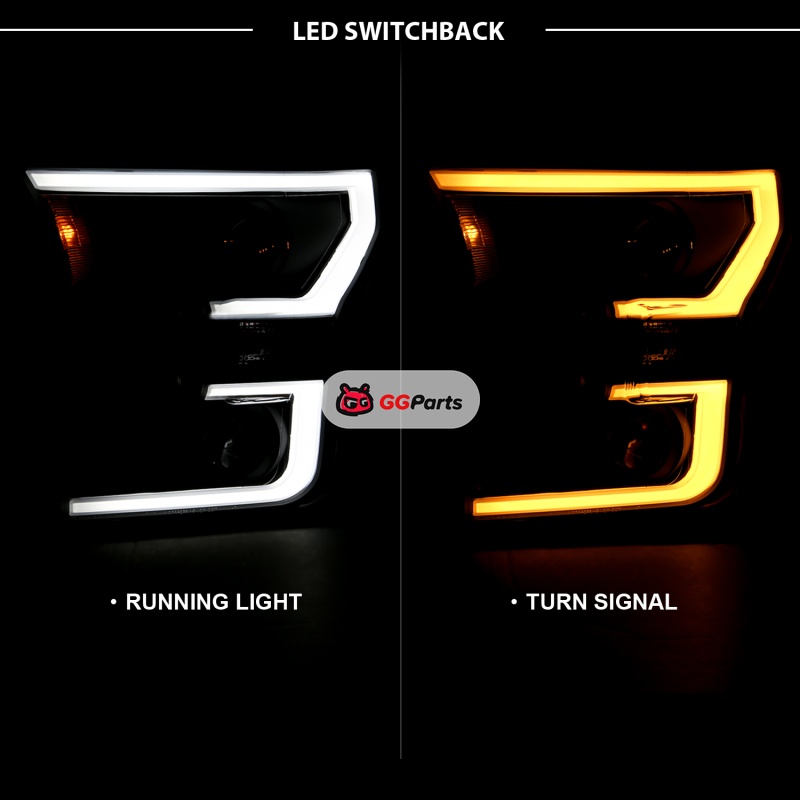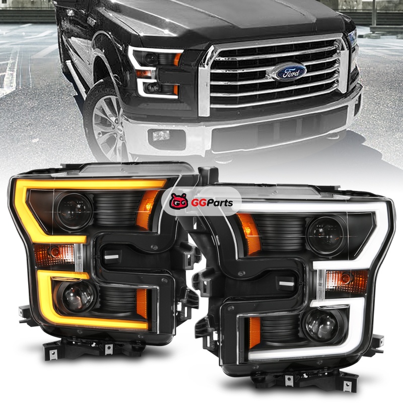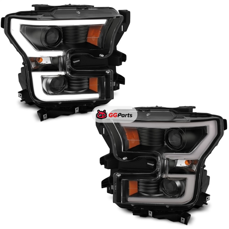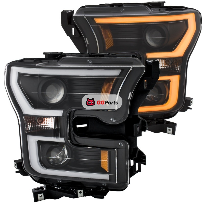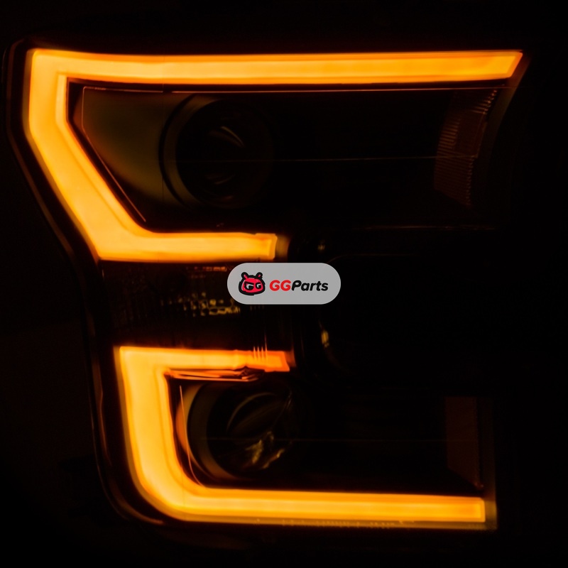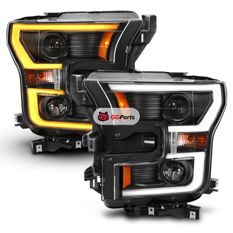 ANZO 2015-2017 Ford F-150 Projector Headlights w/ Plank Style Switchback Black w/ Amber