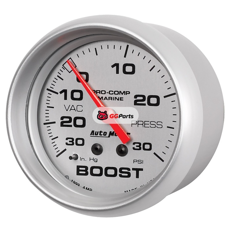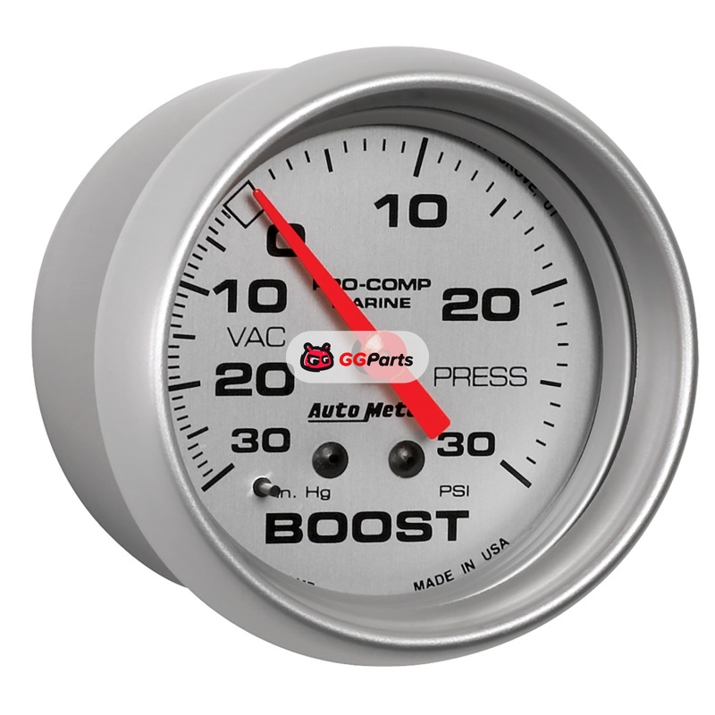 AutoMeter Marine Vac/Boost Gauge 2 5/8in 30INHG 30PSI Mechanical- Silver