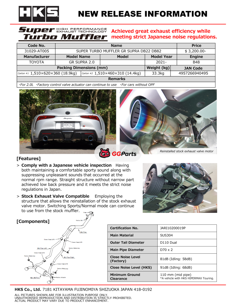 HKS SUPER TURBO MUFFLER GR SUPRA DB22 DB82 B48
