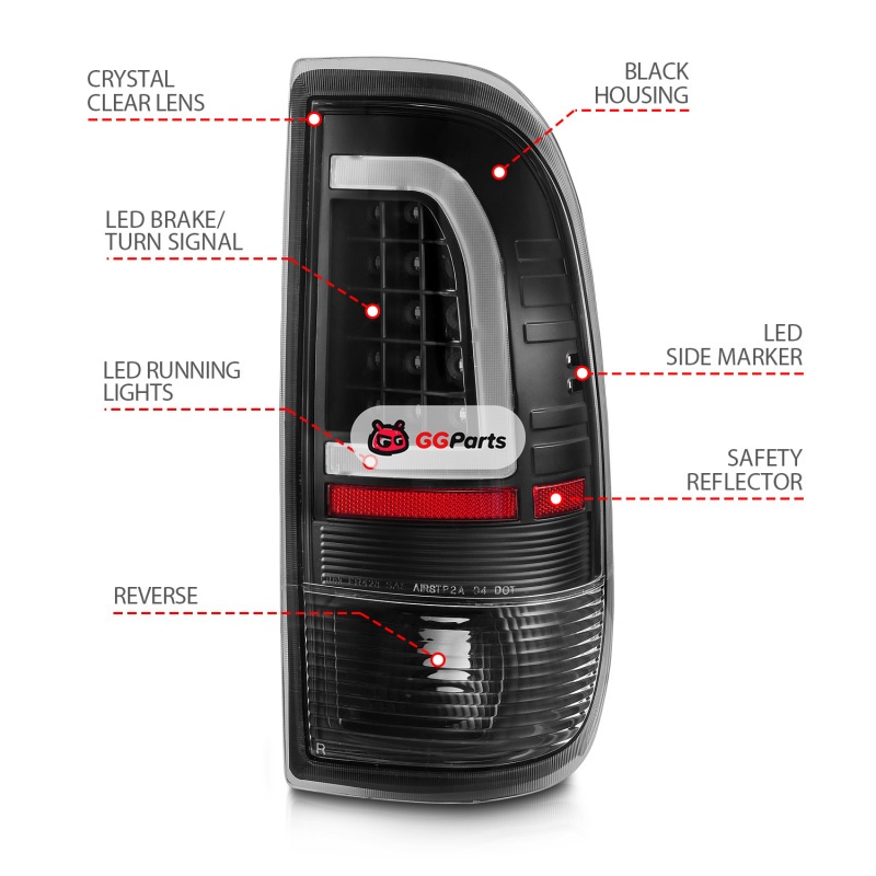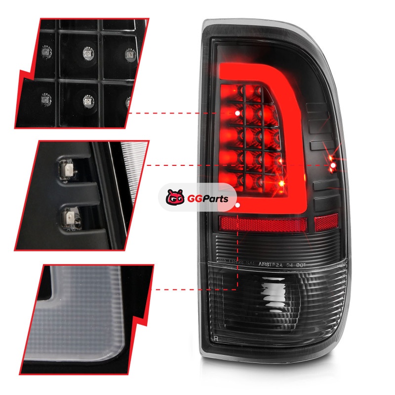 ANZO 1997-2003 Ford F-150 LED Tail Lights w/ Light Bar Black Housing Clear Lens