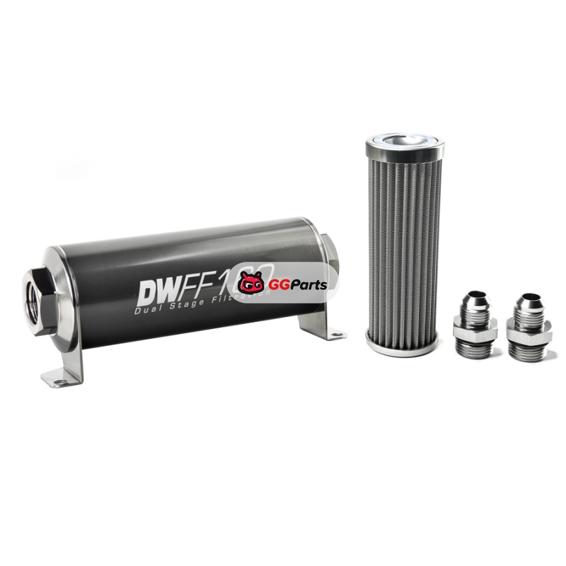DeatschWerks Stainless Steel 8AN 100 Micron Universal Inline Fuel Filter Housing Kit (160mm)
