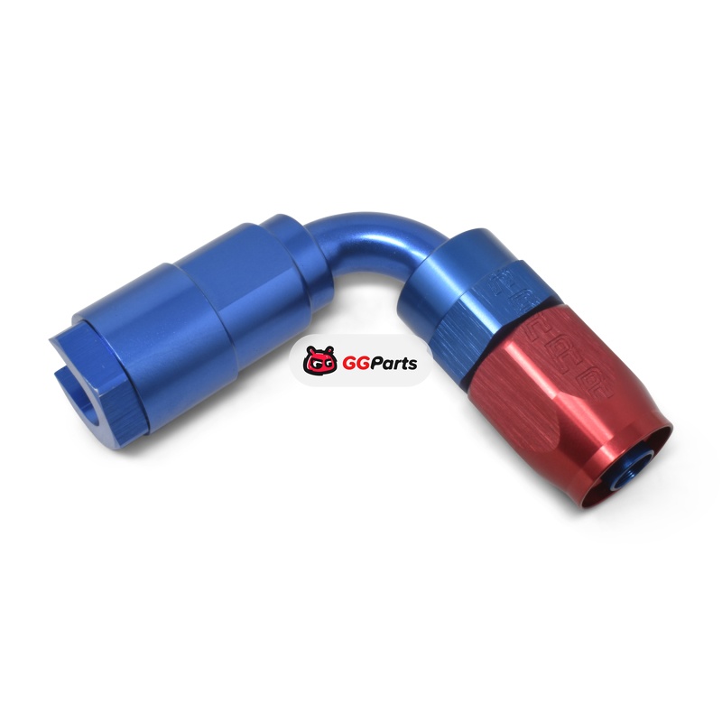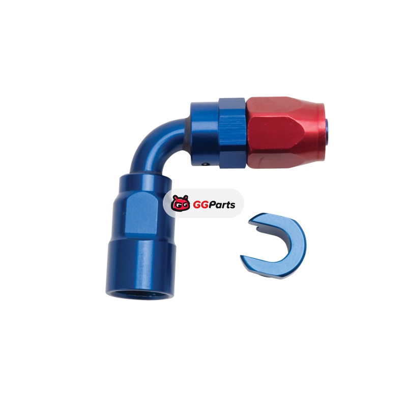 Russell Performance 3/8in SAE Quick Disc Female to -6 Hose Red/Blue 90 Degree Hose End