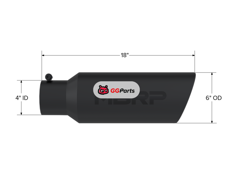 MBRP Universal Tip 6in OD Rolled End 4in Inlet 18in L Black Coated Exhaust Tip