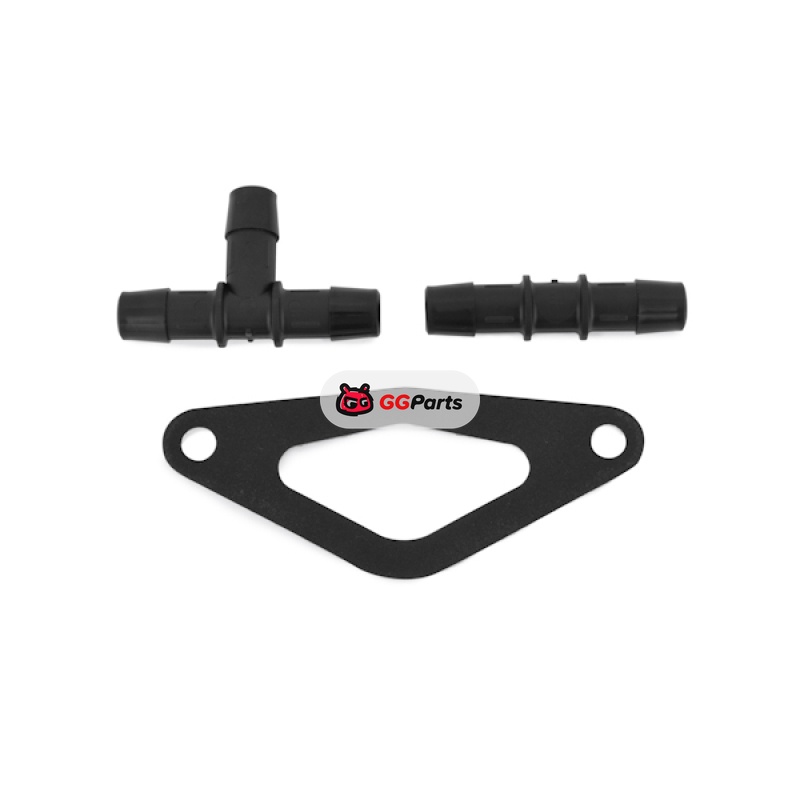 В комплекте красный силиконовый патрубок дроссельной заслонки, шланг PCV, патрубок перепускного клапана, впускной патрубок, прокладка перепускного клапана, нейлоновый фитинг и тройник для шланга, хомуты.