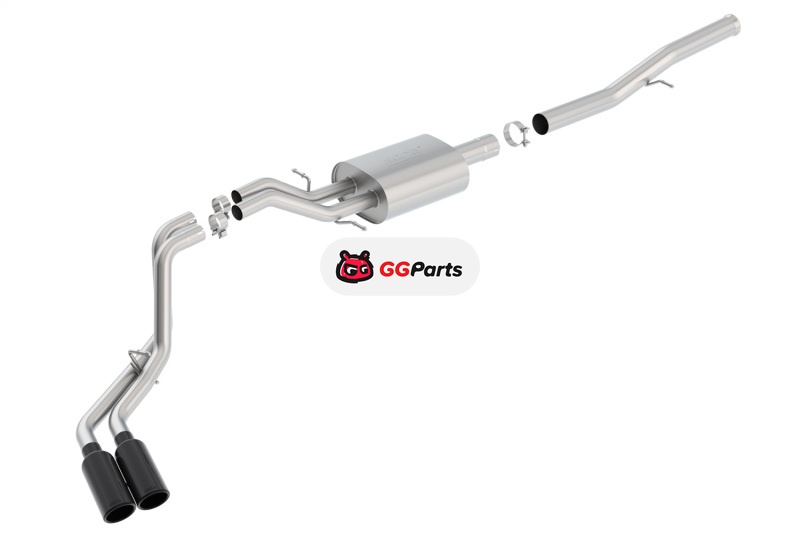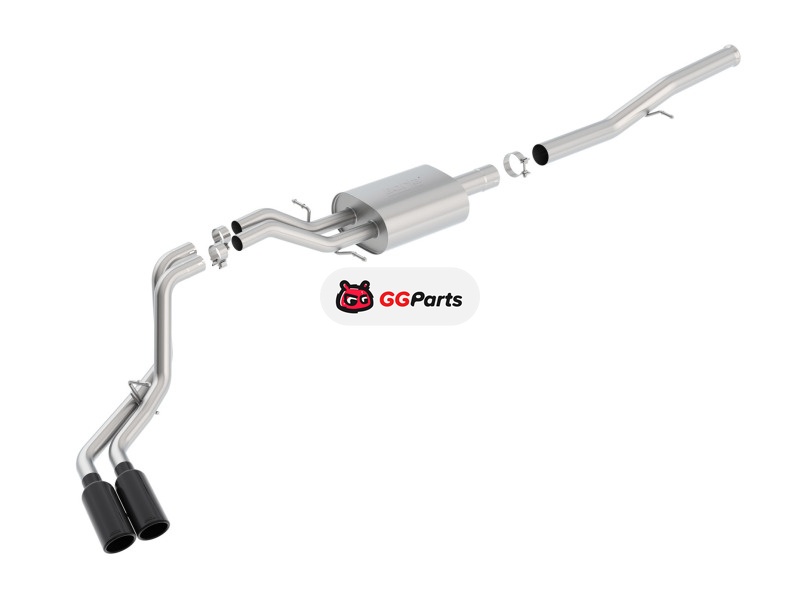 Borla 14 Silv/Sierra 1500 EC Std/CC Short 143.5in WB S-Type Black Tip Dual Rolled Side Exit CB Exht