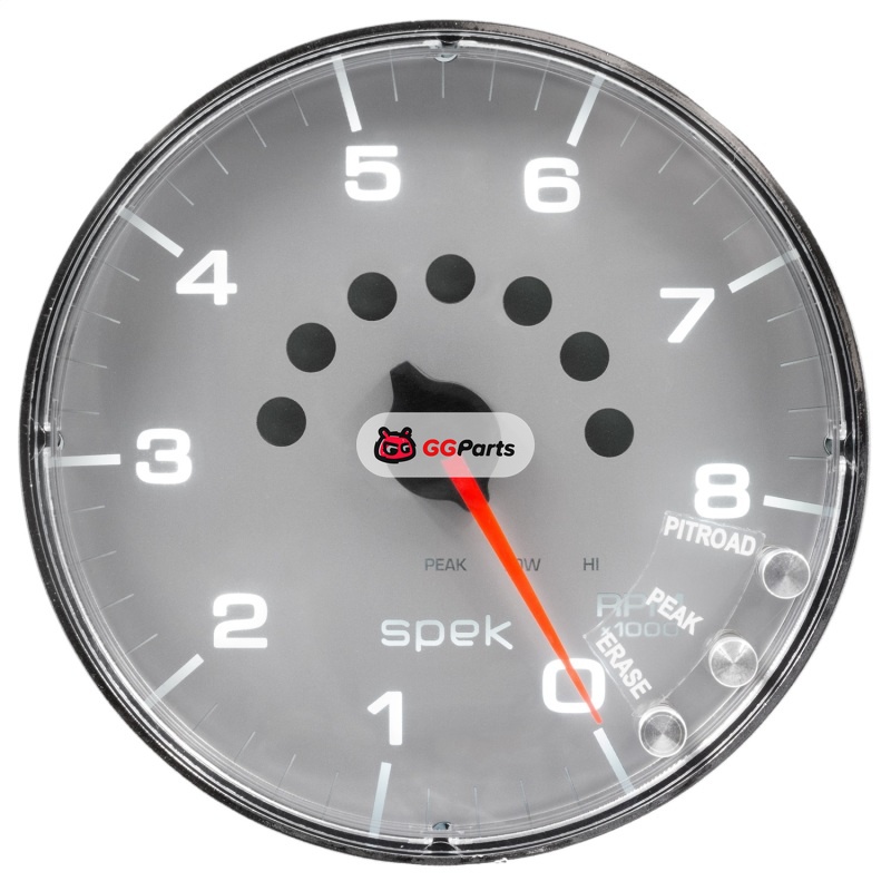 Autometer Spek-Pro Gauge Tachometer 5in 8K Rpm W/Shift Light & Peak Mem Silver/Chrome