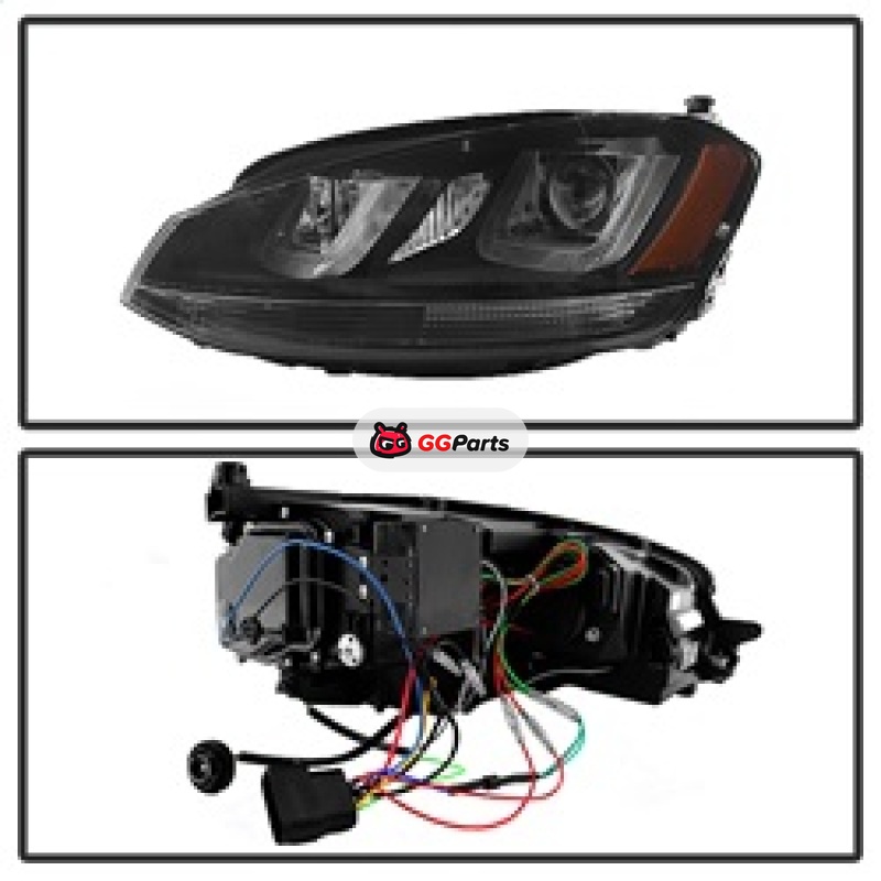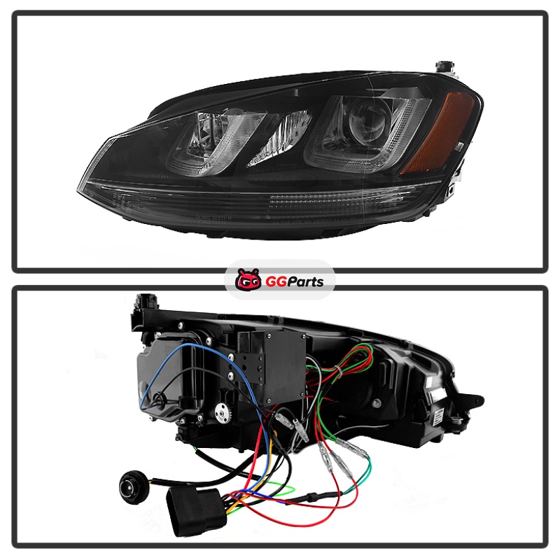 Spyder Volkswagen Golf VII 14-16 Projector Headlights DRL LED Blk Stripe Blk PRO-YD-VG15-BLK-DRL-BK